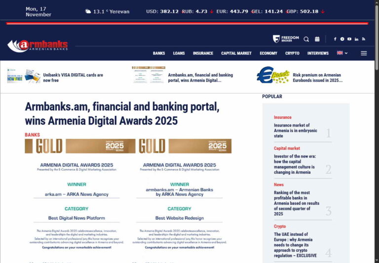 Armbanks.am, financial and banking portal, wins Armenia Digital Awards 2025